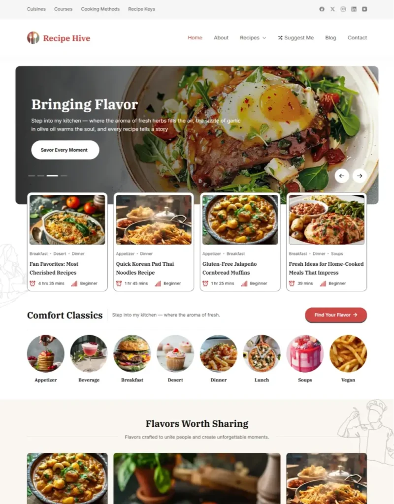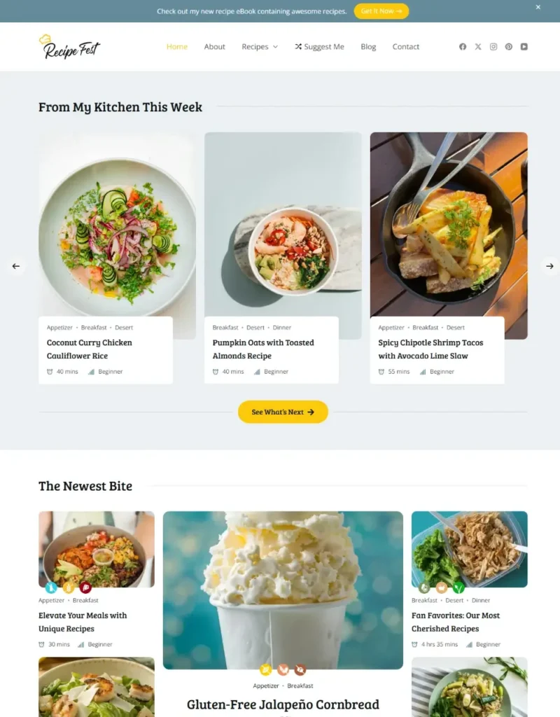 A beautifully designed and professional WordPress recipe theme perfect for foodies and cooking enthusiasts.